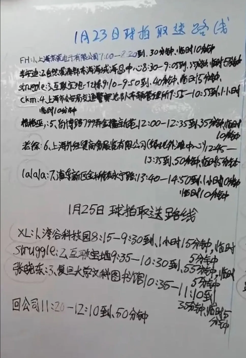 青芽提供的是上门取拍和送拍的服务,这又涉及到跟顾客沟通取送的时间、地点、线路,尤其是送拍,往往送的不是一支,而是五六支甚至更多,孩子们需要乘坐公共交通+共享单车送货上门。面对不同的地址,普通人也要花费一些心思规划路线和时间,有的到达顾客小区门口,没有门禁卡进不去,还得跟门卫沟通。