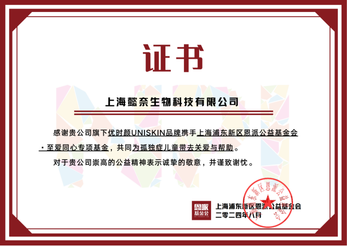 首先,我们要深深感谢懿奈(上海)生物科技有限公司的慷慨捐赠。为了表彰这份无私的爱心,我们联合上海恩派公益金会至爱同心专项基金,颁发一张特别的证书以示感激。