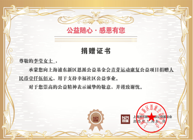 捐赠背景:盛和塾塾生李莹 学长通过帮帮公益平台在线捐赠的方式,向青芽运动提供了1,500 元人民币的善款。他的捐赠将支持青芽运动为特殊需要儿童提供的康复训练和体育活动,帮助他们增强体质、提高自信,并在运动中找到快乐。