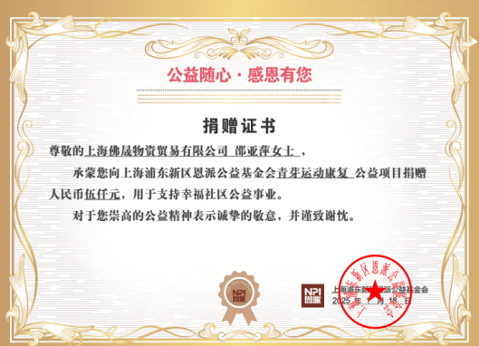 捐赠方:爱心人士邵亚萍(上海佛晟物资贸易有限公司)